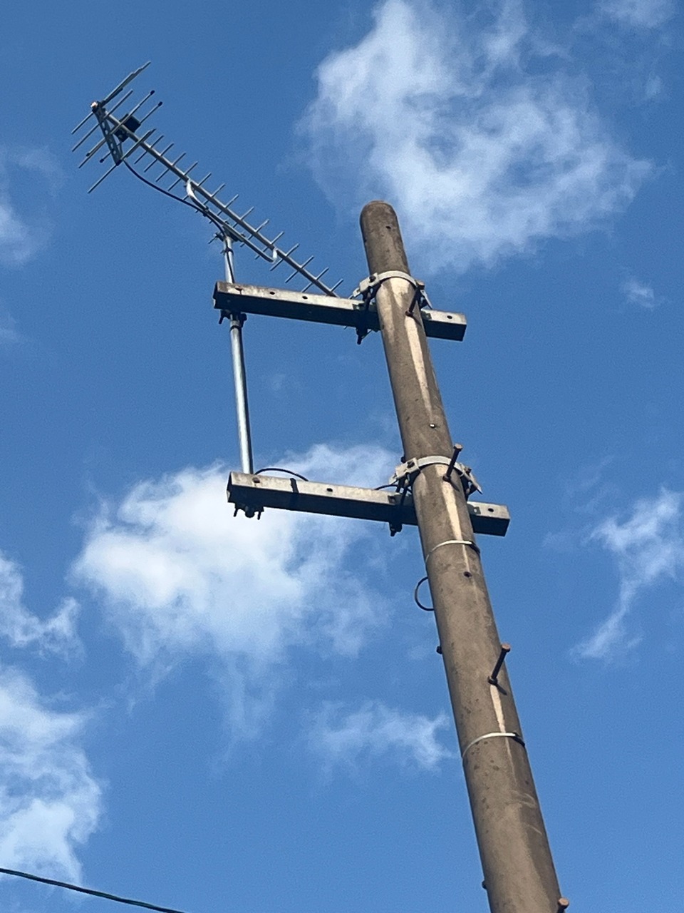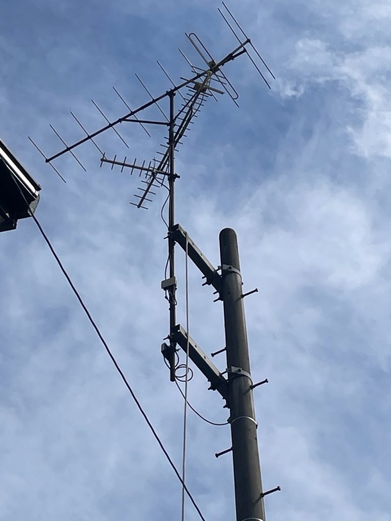 自立ポールにVHFアンテナとUHFアンテナが併設された昔ながらの構成でした。