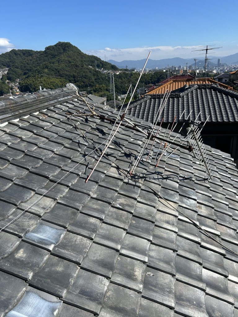 現地に伺って確認したところ、屋根上に設置されていた八木式アンテナが完全に倒れており、非常に危険な状態でした。