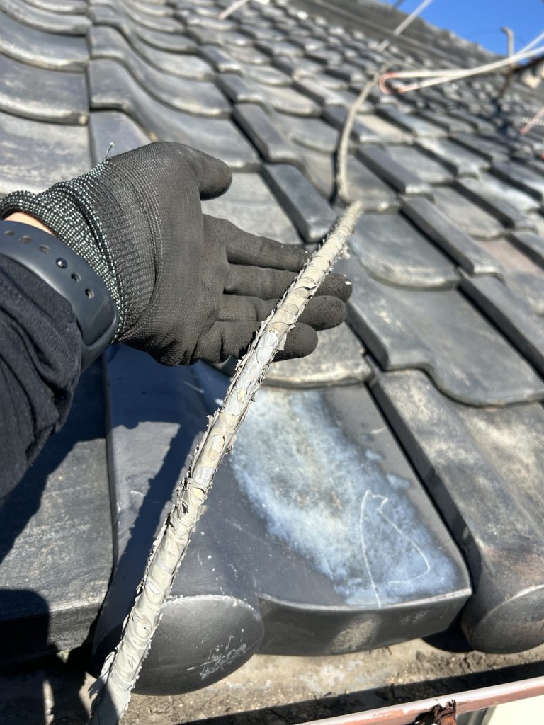 原因を調査したところ、アンテナを固定している支線が切れていたことが判明しました。