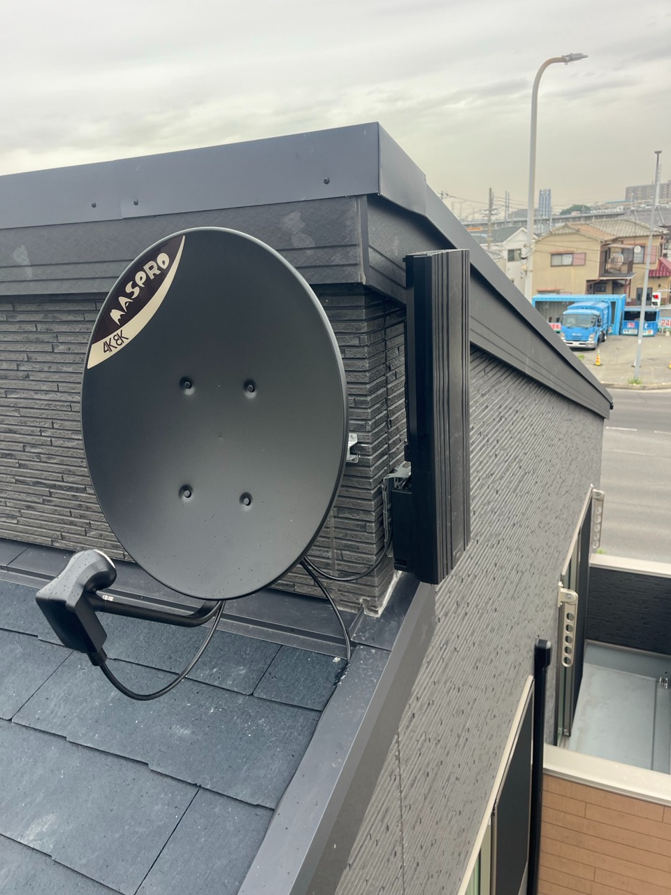 3. 【新築アンテナ工事】兵庫県明石市二見町で黒い外観に合わせたデザインアンテナ+BSアンテナ設置|4K8K対応&ブースターで安定受信